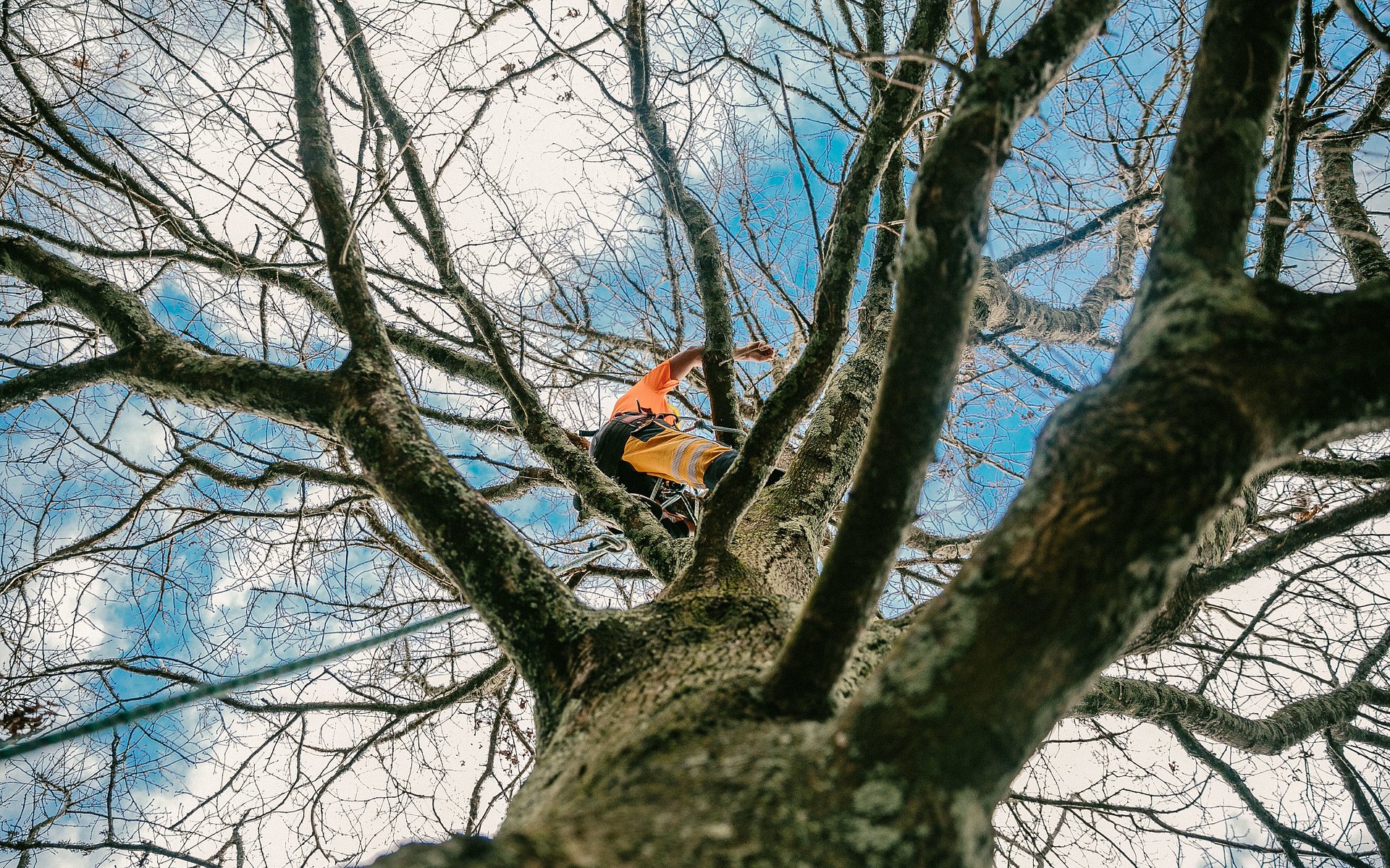 Experienced arborists also use specialist equipment, like harnesses, climbing ropes and chainsaws. Climbing trees is a skill in itself and using a chainsaw is dangerous enough on the ground – combine both and you definitely need to know what you're doing!